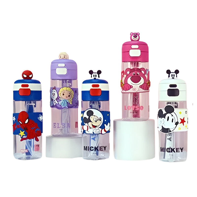 This 550ml cartoon water bottle is perfect for kids who love their favorite characters like Mickey Mouse, Elsa, Spider-Man, and Lotso