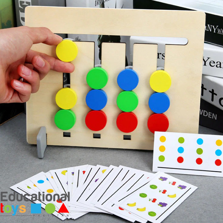 Kids can randomly extract a card and start to move it up, down, left, and right to match the card design.